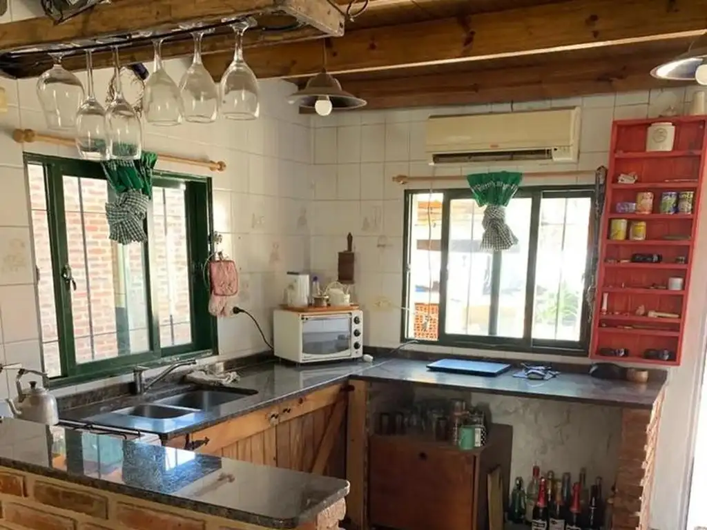 Comedor cocina con barra desayunadora que divide ambos espacios. Aire acondicionado frío-calor. Cuenta con un baño con escalón de ducha, 2 dormitorios y un entrepiso que puede ser utilizado como escritorio/playroom o tercer dormitorio. Pisos cerámicos, techo de chapa. Gas envasado.