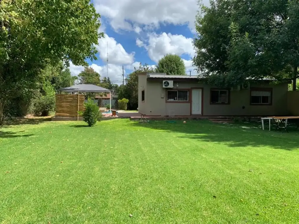 Exterior: piscina en forma de riñón, con bomba y filtro funcionando, monoambiente o cuarto dormitorio con pisos cerámicos . Parrilla, horno de barro, pérgola para estacionar dos vehículos .