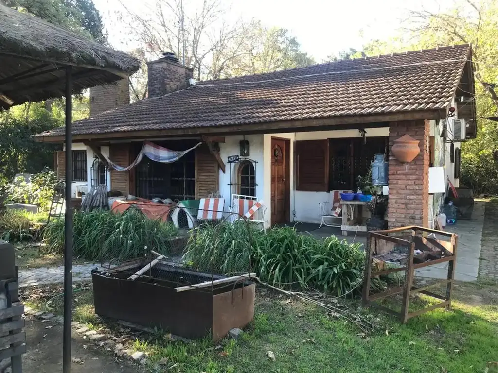Living comedor con vista al parque y chimenea. Cocina integrada por barra desayunadora en madera dura. baño completamente revestido con escalón de ducha. aberturas en madera dura con postigones en madera. Bomba presurizadora.