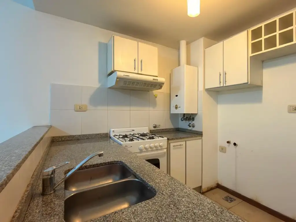 Se ingresa desde la cocina semi integrada con bajo mesada y alacenas de melamina blanco, calefon y cocina con horno a gas separando al living comedor con una barra desayunadora con doble altura e ilumunacion desde el balcon con orientacion al oeste.