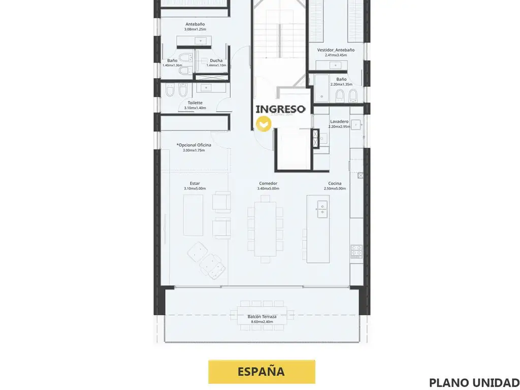Estructura independiente de HoAo; Mampostería exterior de ladrillo visto; Premarco, marco y aberturas de aluminio negro Aluar A40 con sistema DVH; Barandas de balcones y cerramientos PB, en perfiles metálicos estructurales negros; Pisos balcones y patios en porcelanato 1ra calidad; PLANTA BAJA: Hall de ingreso paredes revestidas en láminas SPL, melamina laqueada y piso de porcelanato; Ascensor automático de frecuencia variable, revestido en acero inoxidable, granito y espejos; Portón automático y monta coches para ingreso vehicular con control de acceso remoto; Cocheras con ventilación cenital, tomacorriente individual y piso de cemento alisado o similar; Control de acceso con tarjeta, alarma y cámaras con monitoreo; UNIDADES: Palier exclusivo piso porcelanato o madera pre finished; Ventilación e iluminación natural en todos los ambientes; Paredes enduidas en yeso cO guarda cantos y cielorraso de hormigón visto tableado; Piso de madera o porcellanato en dormitorios (a elección); Piso estar, comedor, baños y balcones porcellanato 1 era calidad (Vitte - Portinari); Muebles de cocina y baños laqueados; Vanitorys con bacha integrada en baños (Marmol_Purastone); Mesadas de cocina y lavadero en Purastone; Bacha cocina integrada y lavadero de acero inox. Johnson; Griferías cocina y baño importadas (Hansgroe) Alemania; Anafes y hornos independientes Whirlpool o similar; Caldera dual Peisa + calefacción por radiadores (Broen); Preinstalación de AACC con previsión de desague; Marcos de puertas interiores metálicos con puerta placa laqueada y herrajes bronce platil; Artefactos sanitarios para baño Ferrum o similar con válvula; Revestimiento baños porcellanato rectificado; Puertas ducha y sanitarios de vidrio templado translúcido; Premarco, marco y aberturas de aluminio negro Aluar A40 con sistema DVH