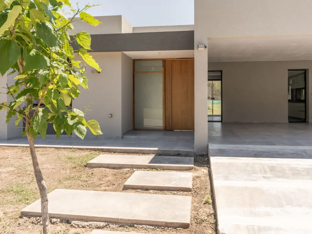 "A ESTRENAR". Porch, Living-comedor, cocina, 3 dormitorios (el principal con vestidor), 2 baños, lavadero y galería con asador. Garage para 2 vehículos. Superficie cubierta: 139m2 más 52m2 de galerías. SERVICIOS: Energía eléctrica, agua de red y gas natural. Otras mejoras: cordón-cuneta y calles con hormigón articulado. Expensas: consultar.
