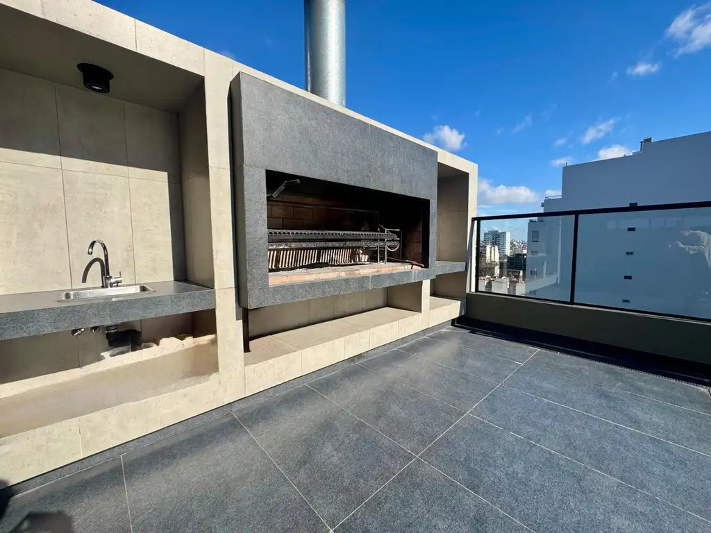 Tiene cocina integrada con barra desayunadora, anafe y horno electrico. Espacio y conexion para lavarropas.