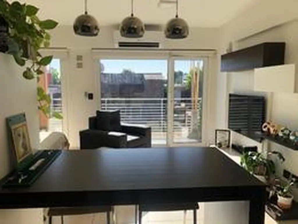 - Cuenta con una cocina completamente amoblada con muebles de alto y bajo mesada. Integrada al ambiente principal con una barra alta tipo desayunador.