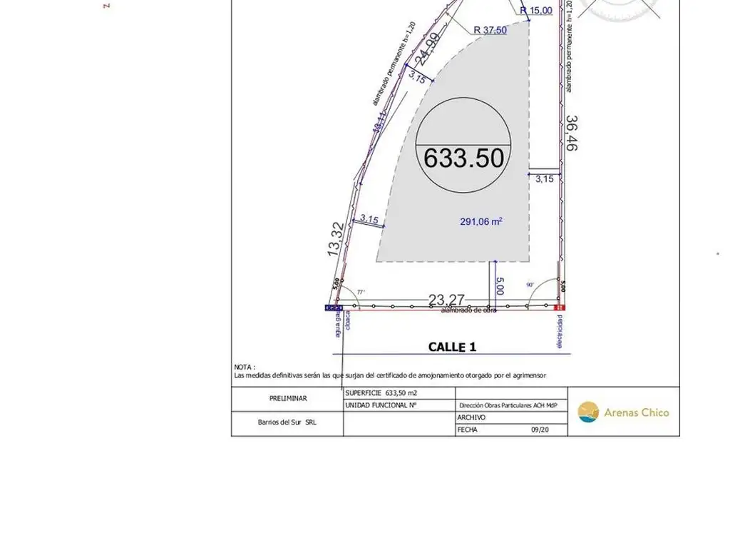VENTA TERRENO EN ARENAS CHICO, 633M2 BARRIO PRIVADO