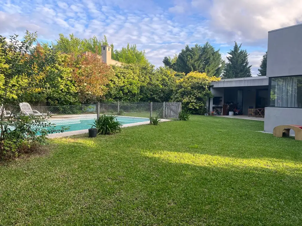 La casa cuenta con gran parque con gramma bahiana, riego, pileta con cerco y juegos de madera para chicos.