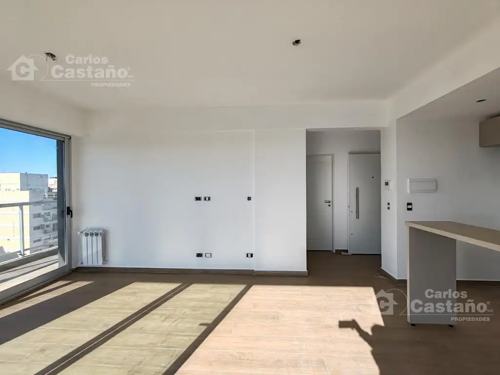 Living-Comedor de 6,5x3,1m con salida al Balcón en "L" de 7,85x1,2m y 6,2x1,4m con Parrilla eléctrica, pisos en Porcelanatos de primera calidad, grandes ventanales "A30" con doble vidrio "DUH", con exc. vistas panorámicas y mucha luz; la Cocina esta integrada al Estar, moderna con muebles completos de alacenas y bajo mesada, anafe + horno empotrado, espacio para heladera grande; Dormitorio de 3,6x2,9m con Placares; Baño completo.