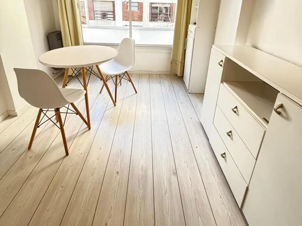 _ El mismo posee cocina equipada con muebles sobre y bajo mesada, un espacio principal con espacios de guardado empotrados y un baño completo con bañera. Luminoso, cuenta con muy buena ventilación natural. Se ofrece amoblado y equipado.