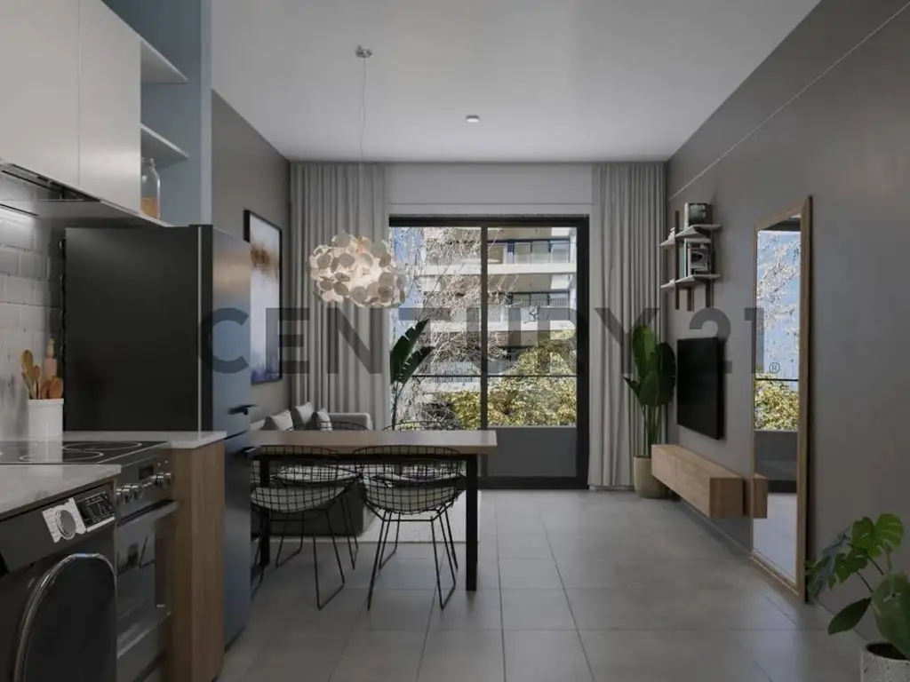 Monoambiente en primer piso al frente, con balcón. Cuenta con cocina integrada equipada con bajo mesada y alacena, placard completo, preinstalación para aire acondicionado y cortinas black out. El baño posee ventilación natural, brindando luminosidad y confort.