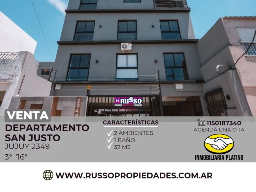 Excelente departamento en Venta en Bs.As. G.B.A. Zona Oeste, La Matanza, San Justo. Con una superficie total de 32.00 metros cuadrados, este hermoso espacio cuenta con 2 ambientes perfectamente distribuidos para tu comodidad. Una excelente oportunidad para adquirir tu nuevo hogar. ¡No dudes en contactarnos para más información!