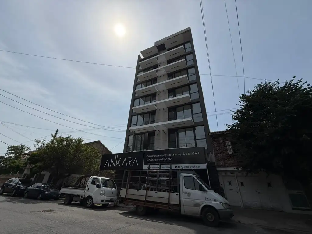 El departamento de 3 ambientes, cuenta con los dos dormitorios en suite, con vista al contrafrente.