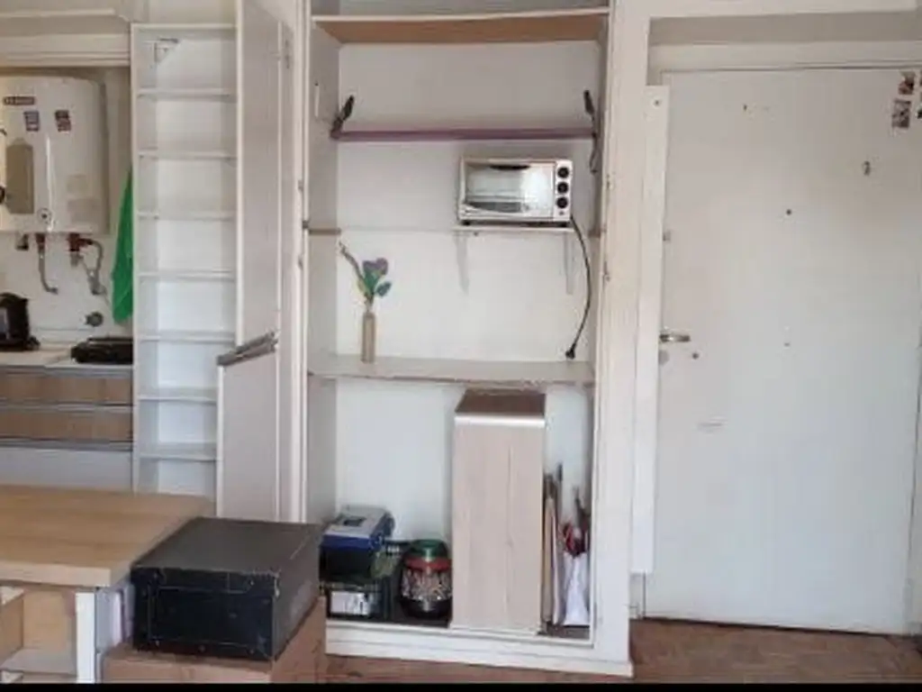 Ambiente con kitchenette, baño completo, ambiente equipado con muebles a medidas y balcón.