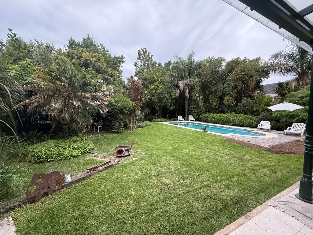 El jardín es un verdadero espacio para eventos sociales, con varios sectores diseñados para reuniones y celebraciones. Una parrilla interior y otra exterior permiten disfrutar de deliciosos asados en cualquier momento. Un estanque con pececitos de colores agrega un toque de serenidad y belleza al jardín y la piscina