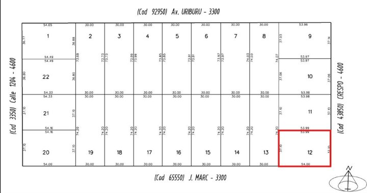 El terreno cuenta con 37,10 metros de frente por 54 metros de fondo, ofreciendo una superficie total de 2.000 m², ideal para desarrollo industrial, logístico o de servicios.