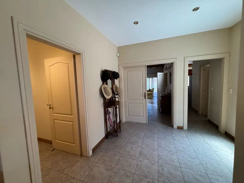 La propiedad se desarrolla en una planta con una distribución funcional y bien definida. Al ingresar, se accede a un recibidor que conecta con un espacio de oficina, un toilette y la zona de descanso, donde se ubican tres dormitorios, uno de ellos en suite con vestidor. Desde el mismo recibidor se accede a la sala de estar y comedor principal con vistas al jardín, ambiente que se vincula con la cocina, la cual cuenta con comedor diario. Desde la cocina también se accede a un pasillo que conecta nuevamente con el hall de ingreso y donde se encuentra el lavadero.