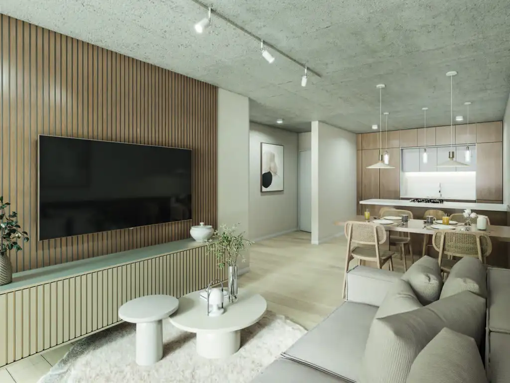 Características: ingreso a living comedor con pisos de porcelanato y salida a balcón amplio al frente. Cocina semi integrada separada por barra con muebles bajo mesada y alacenas. Hall distribuidor que une dormitorio secundario con placard. Un baño completo y dormitorio principal en suite con placard completo.