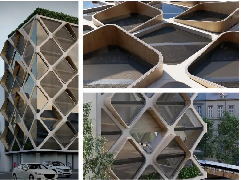 Proyecto: Edificio de Dinamic con planta baja más 8 pisos, 1 ascensor, control de acceso, bicicleteros, quincho común, solárium y pileta en azotea.