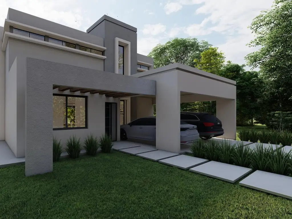 Pisos de porcelanato en áreas sociales; Revestimientos de porcelanato en baños; Aberturas de aluminio con DVH; Calefacción por losa radiante; Preinstalación para aires acondicionados; Cocina equipada con muebles bajo mesada y alacenas; Isla central con mesada de granito; Griferías y sanitarios de primera línea; Pérgola de estructura metálica; Parrillero completo con barra y mesada de apoyo; Iluminación embutida en galería
