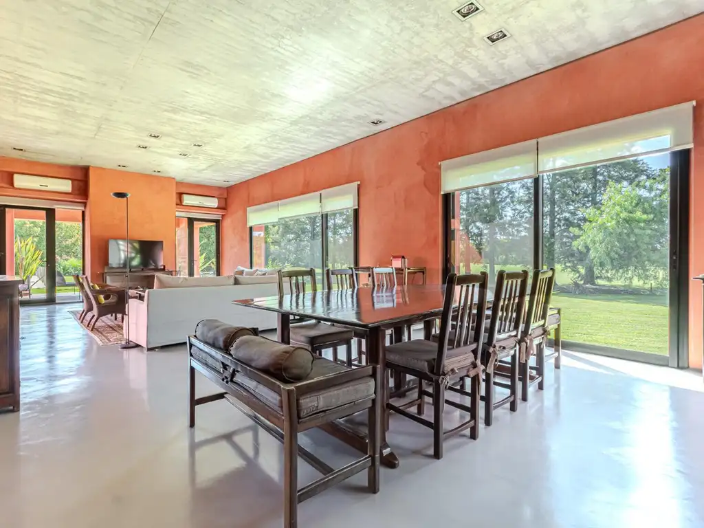 La planta baja es muy espaciosa dada la gran altura de sus techos. Gran living comedor vidriado con chimenea, muy luminoso y con vistas al verde. Importante recepción con su toilette y placares de visita.