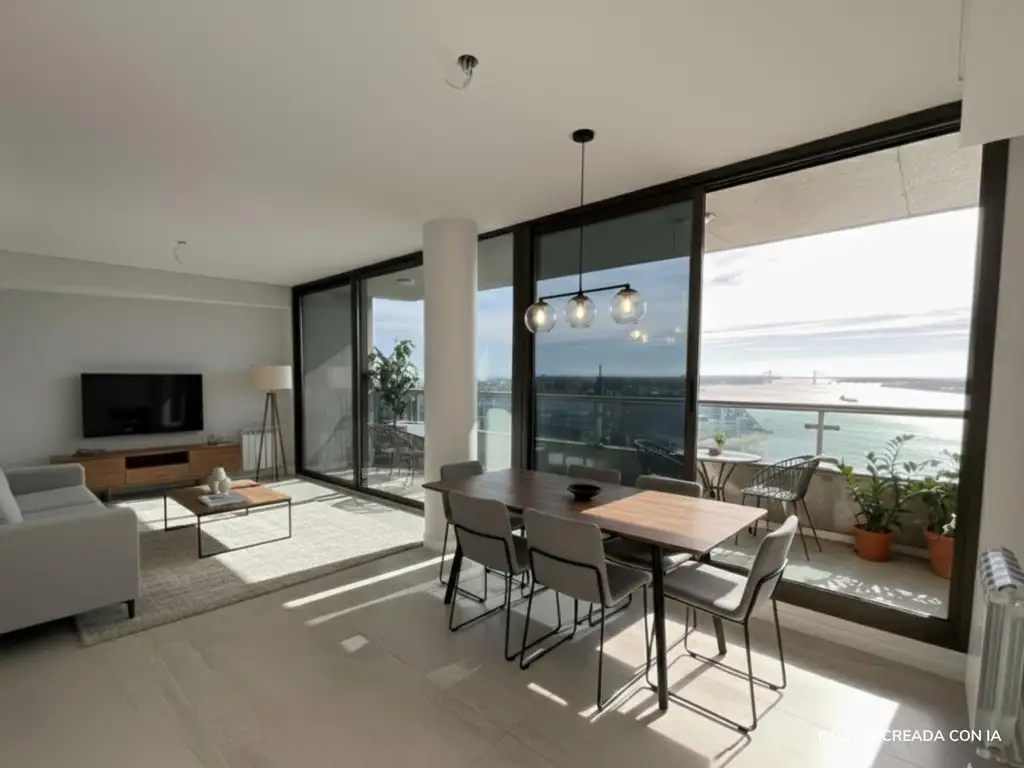 Descripción: Increíble departamento de un dormitorio en un piso alto. Al ingresar nos encontramos con un estar-comedor de amplias dimensiones, con balcón al frente de vista franca al río que proporciona una impresionante iluminación y ambiente. Cocina integrada con barra desayunadora, lavadero independiente y toilette. Un dormitorio con baño en suite y vestidor.