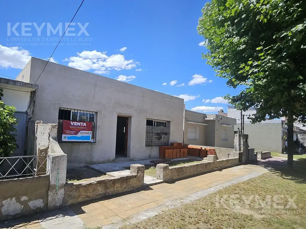 Son 90 m2 cubiertos en lote de 300 m2, doble frente (calle Amancio Williams al frente y Presidente Juan D. Perón al contrafrente).