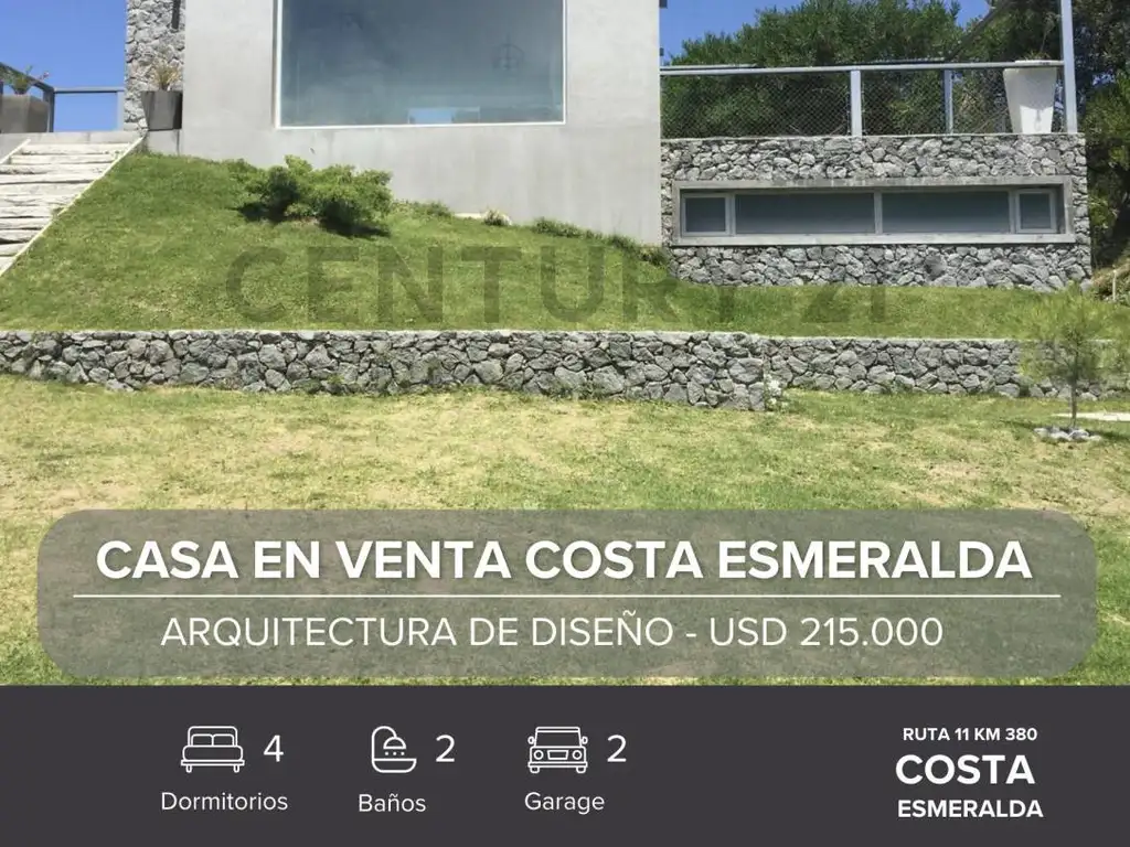 Se vende hermosa propiedad en el exclusivo barrio cerrado Costa Esmeralda, ideal para vivir o invertir. Rodeada de naturaleza, a pocos minutos del mar, esta casa combina comodidad, diseño y calidad constructiva.