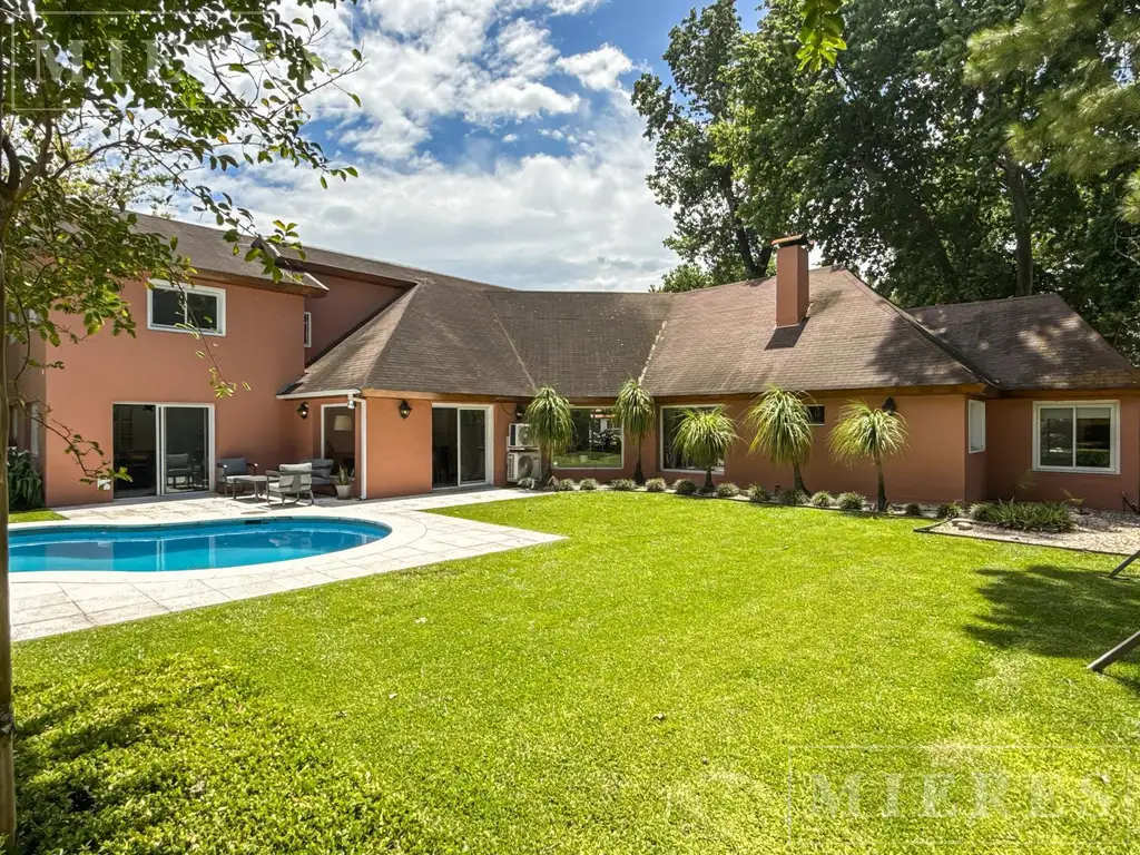 Afuera: galería con parrilla, jardín con excelente parquización, pileta,.