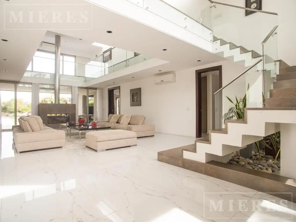 PA: 3 dormitorios juniors todos en suite + la master suite principal. Todos estos dormitorios se encuentran ubicados alrededor de un gran hall de distribución que balconea al living . En el techo, unas rajas de vidrio le dan luminosidad natural a toda la planta alta. Master suite de 90 m2, cómodo vestidor y baño con doble bacha, box con doble ducha, amplio hidromasaje y sauna con una gran ventana que le da muchísima luz.