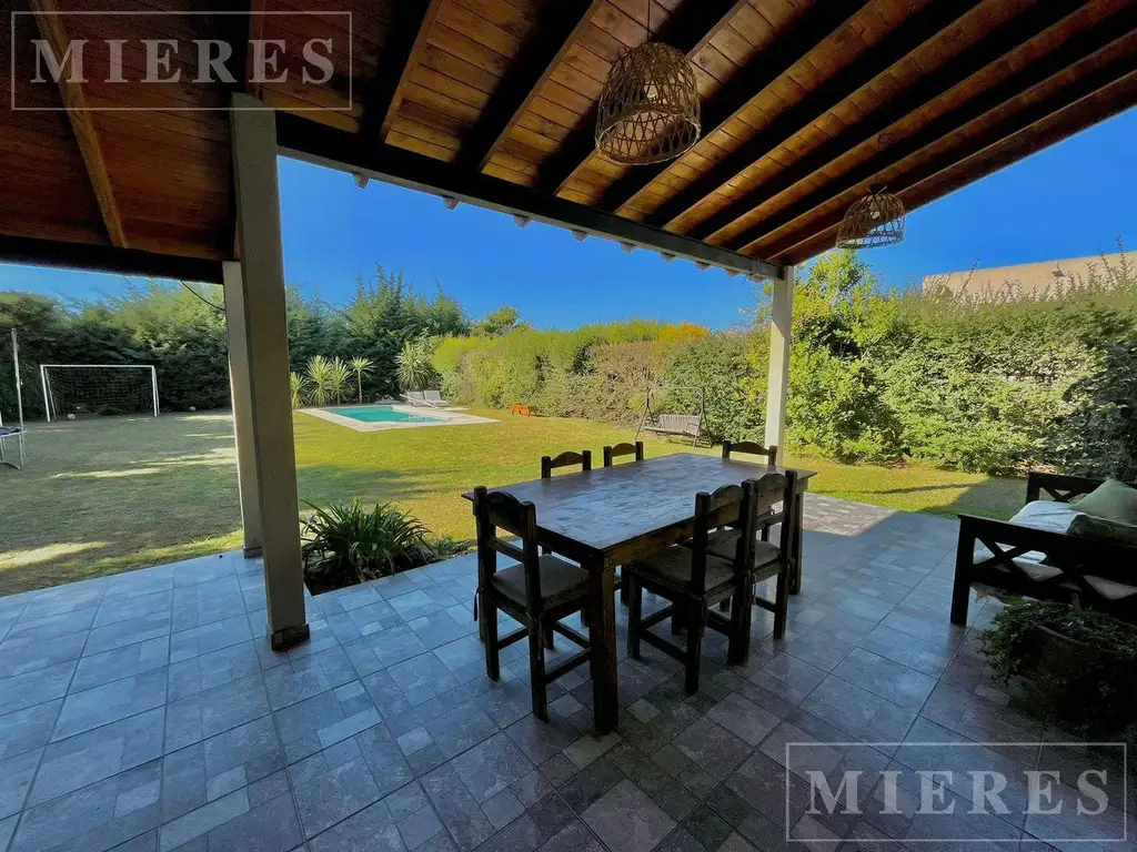 Exterior: Galería - Parrilla con instalación lista para horno pizzero - Jardín - Pileta de fibra de vidrio con filtro automático.