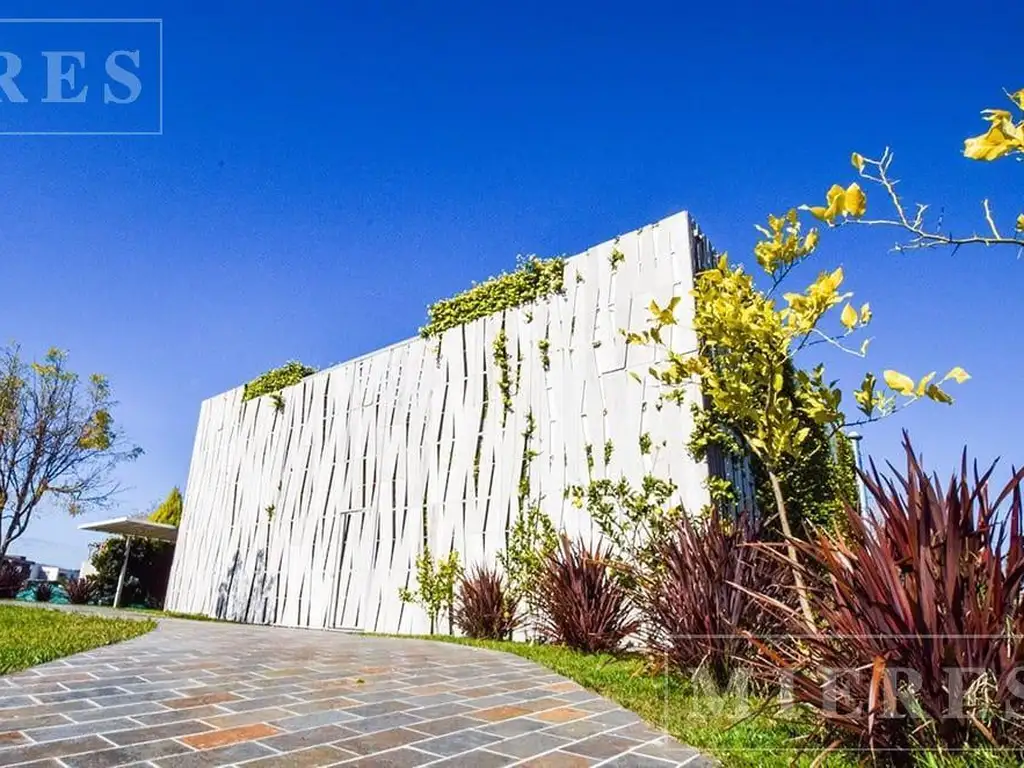 Fachada y puerta de fibrocemento de doble altura, moderna e imponente.