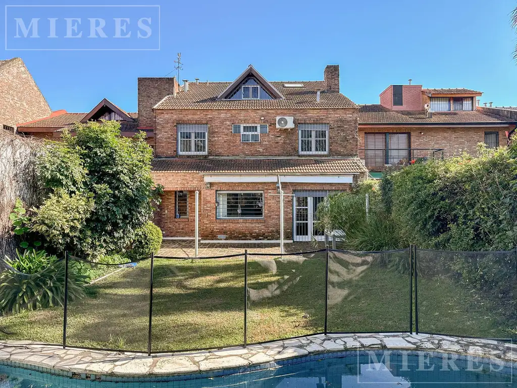 En planta alta: Suite principal con vestidor, aire acondicionado y baño compartimentado, y tres dormitorios con placares, uno con vista al frente y el resto con vista al jardín, que comparten un baño completo.