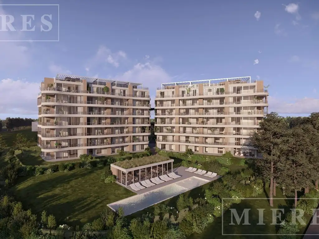 Son 80 departamentos de 1, 2 y 3 ambientes en diversas propuestas. Un diseño que abraza el paisaje con su forma orgánica generando amplias visuales al lago central, y al verde que lo rodea, con orientación norte.