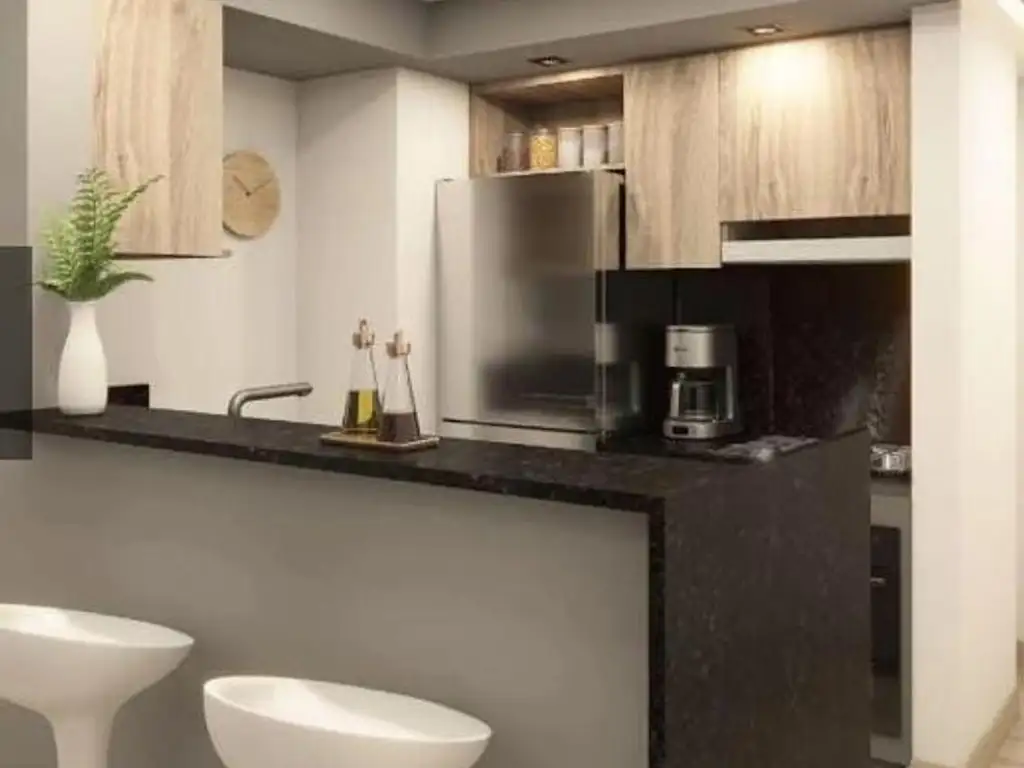 Sistema central de agua caliente en deptos de 1 dormitorio.
