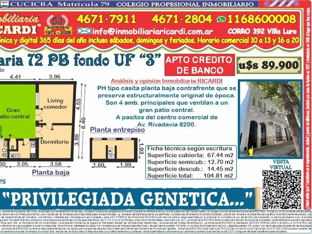 El PH en sí mismo se trata de Planta Baja contrafrente de muchos ambientes ideal familia numerosas o ensambladas con hijos preadolescentes y adolescentes, incluso como mayoritariamente tiene mayormente toda la comodidad en planta baja resulta sumamente cómodo para vivir y todo ventila e ilumina a un patio central soñado para llenarlo de plantitas