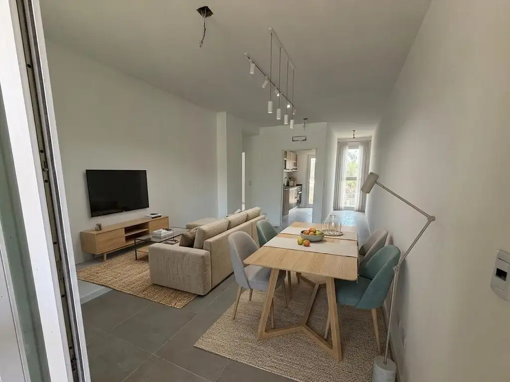 Al entrar, hay un espacio grande y abierto que combina las funciones de Sala de Estar y Comedor.