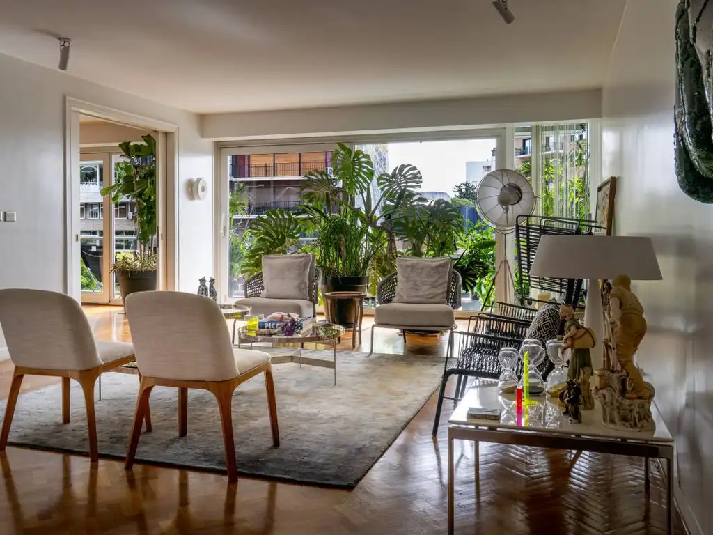 Hall de entrada, living y comedor con salida a balcón corrido y playroom a gran pozo de aire luz. Toilette de recepción. Pasillo de circulación que conduce a un espacio actualmente utilizado como escritorio, dos dormitorios que comparten un baño completo, y dormitorio principal en suite con amplio vestidor y baño completo. Los tres dormitorios dan a un segundo balcón corrido.