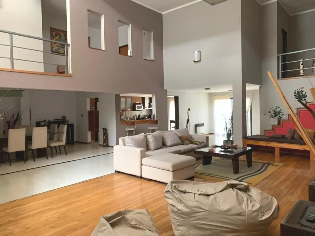 Casa de pasillo en PH con ingreso a hall de recepción, seguido de gran living-comedor en triple altura, 2 patios de ventilación internos (uno de ellos con galería y parrillero propio, tipo quincho), cocina separada con comedor diario, baño completo, lavadero y doble circulación hacia planta alta con escaleras hacia las dos alas de la casa, teniendo 4 dormitorios (uno en suite con vestidor) más un playroom o sala de tv y 1 baño secundario completo. Techos planos de loseta de hormigón y en una parte claraboya metálica dándole un sentido industrial a la propiedad. Terminación de jerarquía con pisos de porcelanato en combinación con madera maciza y pisos de alfombras en los dormitorios, aberturas de aluminio con mosquiteros, calefacción por estufas a gas y agua caliente por termotanque, placares completos con interiores. Baños con finos detalles de terminaciones en las paredes (completamente revestidos), loza sanitaria y griferías en perfecto estado de uso y en baño principal contamos con hidromasaje. Cocina amplia con mobiliario de bajo mesada, alacena, horno y anafe diferenciados, bacha de acero doble inoxidable sobre mesada de granito, extractor y espacio técnico para heladera.