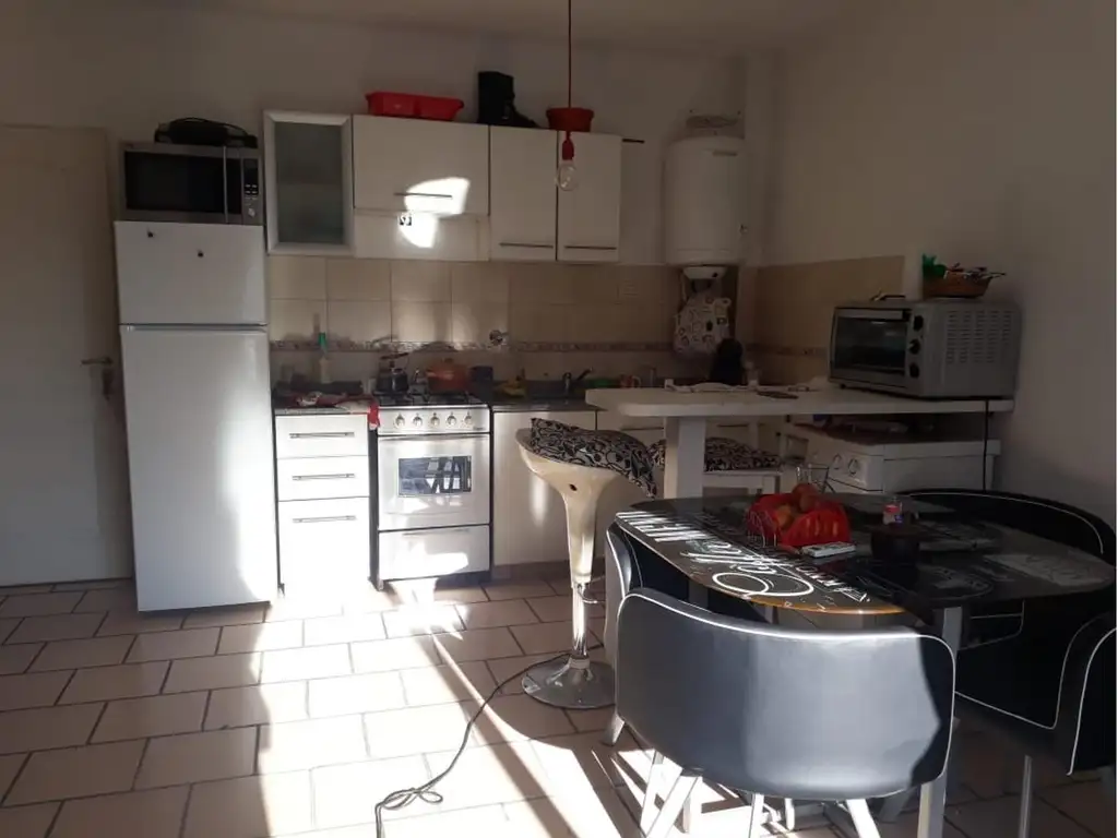 DORMITORIO CON PLACARD E INTERIORES COMPLETO. LIVING COMEDOR CON COCINA INTEGRADA Y PISOS CERÁMICOS. VISTA AL FRENTE. LAVADERO INCORPORADO Y BAÑO COMPLETO.