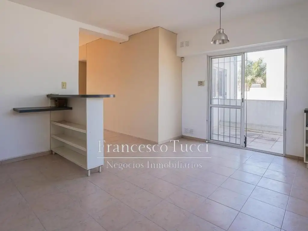 Al ingresar, nos encontramos con un luminoso living con ventana hacia la calle. A continuación, la amplia cocina comedor con barra desayunadora, espacio para heladera y lavarropas. Este ambiente tiene salida a la gran terraza con parrilla que posee la propiedad.