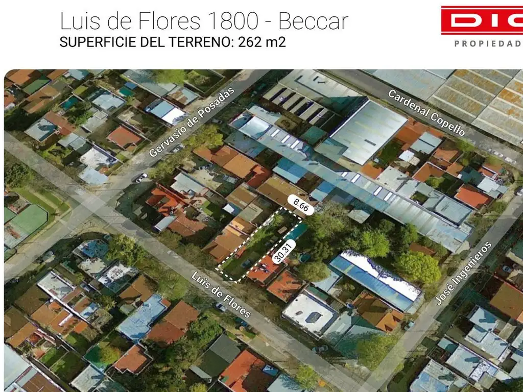 Cuenta con 8,66 mts. tanto al frente como en su contrafrente y más de 30 metros en sus laterales. Muy buena zona residencial, donde se destacan las casas bajas y calles tranquilas, de poco ruido y poco tránsito.