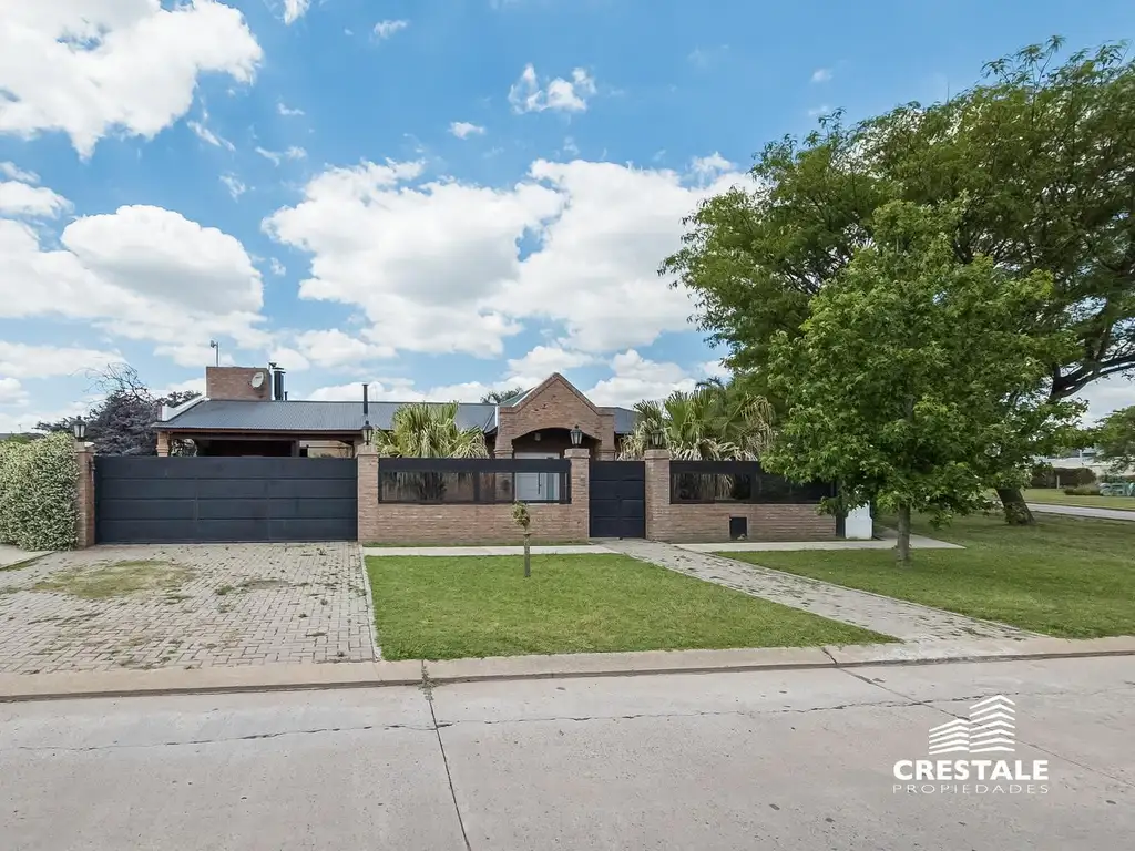 Aberturas de aluminio; Pisos cerámicos; Placares a medida; Cocina con mobiliario completo y barra desayunadora; Baños con sanitarios y griferías de calidad; Quincho con parrillero y barra; Piscina con sistema de filtrado y riego automatizado; Jardín parquizado