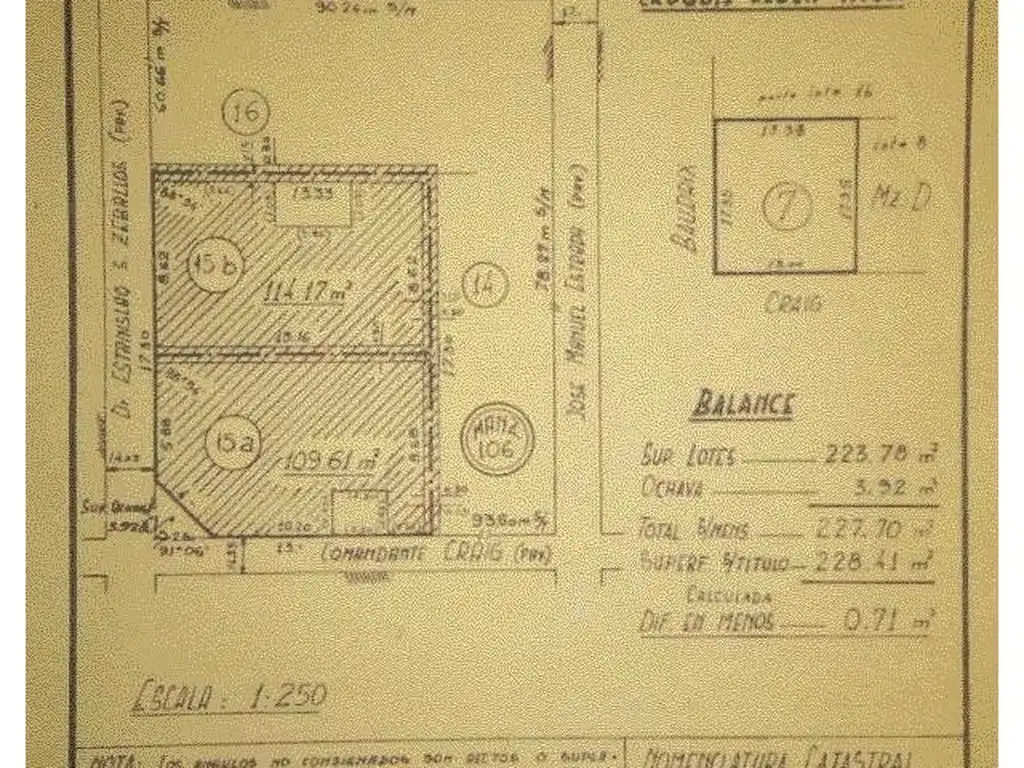 LOTE EN ESQUINA 13 X CRAIG, 6 X ZEBALLOS + OCHAVA 4 , POSEE CONSTRUCCIÓN EN 2 PLANTAS EN ESTADO REGULAR DE 174 m2