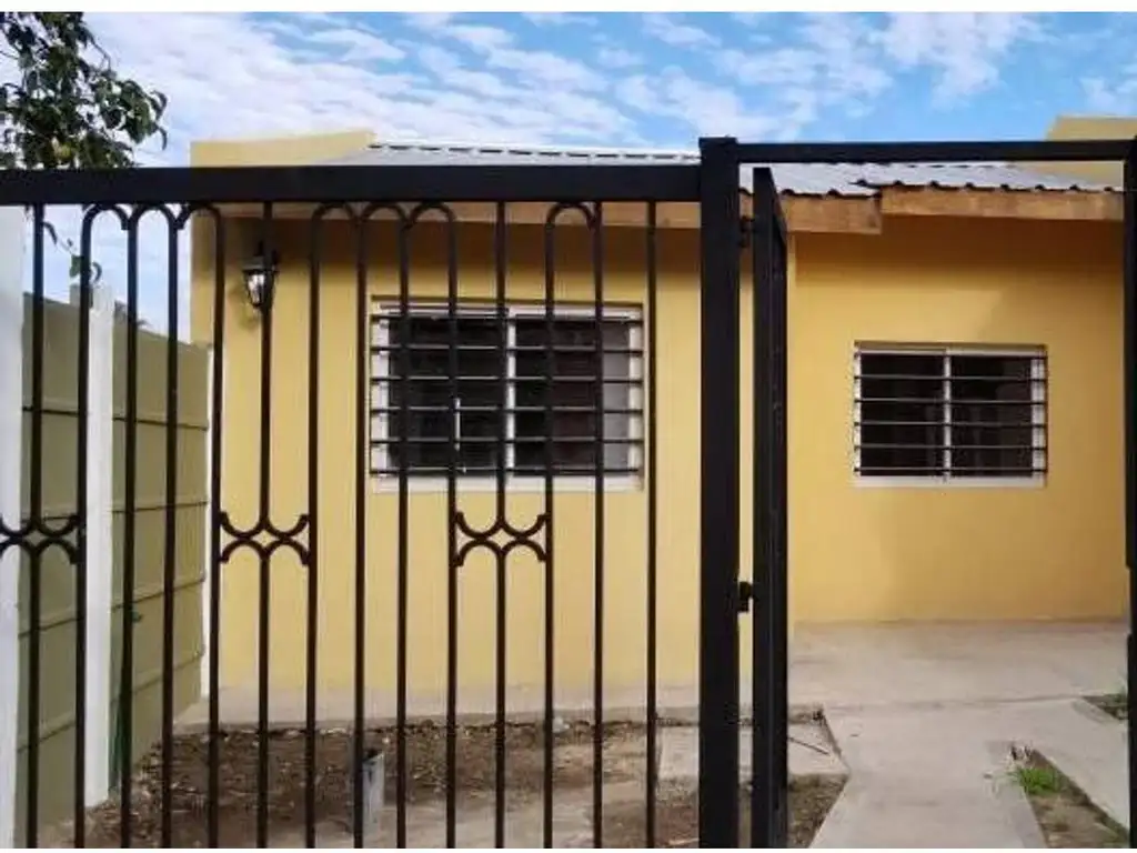 Posee cocina-comedor con mueble bajo mesada y termotanque eléctrico, dos dormitorios, baño completo con ducha, entrada para vehículo, patio con espacio verde, rejas en la entrada y en cada ventana, pisos de porcellanato, techo de chapa.