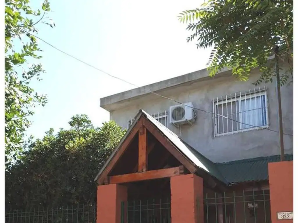 Resuelta en 2 plantas, en planta baja posee amplio living-comedor, cocina con comedor diario, dos dormitorios y baño completo; en planta alta posee un dormitorio, baño completo con bañera, amplia sala de usos múltiples y terraza. Galpón con conexión para lavarropas, parrilla, patio arbolado y espacio guarda coche para dos vehículos techado. Cuenta con estructura de losa de hormigón y escalera, paredes de ladrillo común, revoques finos a la cal, cielo raso a la vista. Los techos en planta alta de losa de hormigón, con terraza, pisos cerámicos, baños completos revestidos, cocina completa amueblada, aberturas de chapa con persianas y rejas, puertas placa con marcos de chapa. Posee dos aires tipo split y un termotanque a gas.