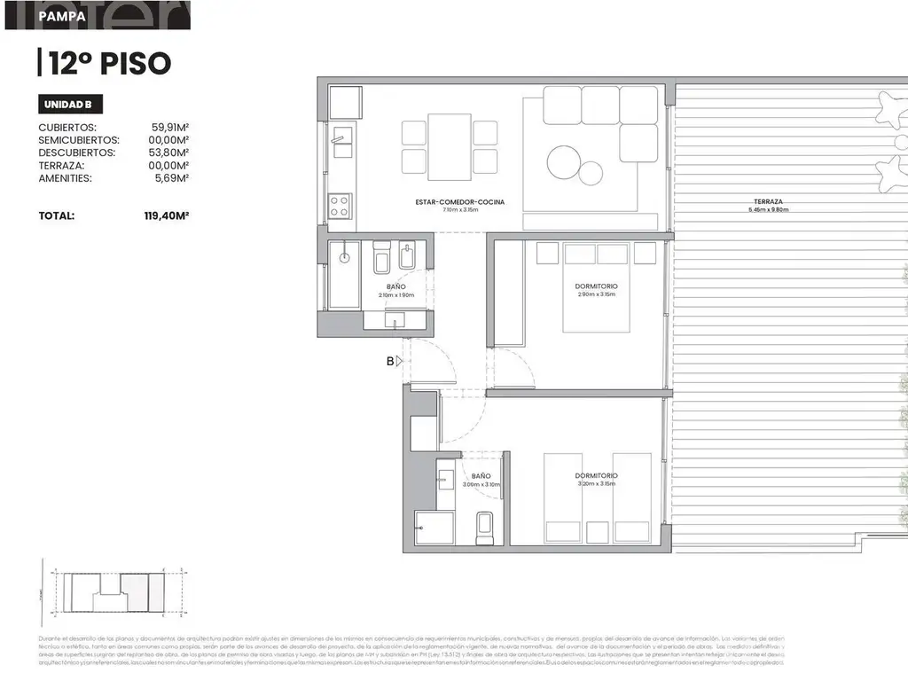 Todas las imágenes, planos, descripciones, y características indicadas son meramente referenciales e ilustrativas y podrán ser modificadas sin previo aviso. Las superficies indicadas son estimadas. Las superficies y medidas definitivas surgirán del plano de mensura final aprobado oportunamente por el GCBA. Las fechas de inicio de obra o posesión son estimadas, podrán ser reprogramadas por la Dirección de obra y dependerán a su vez de un proceso de aprobaciones municipales u otros organismos intervinientes. Los precios indicados podrán modificarse sin previo aviso. El interesado deberá realizar las verificaciones respectivas previamente a la realización de cualquier operación, requiriendo por sí o sus profesionales las copias necesarias de la documentación que corresponda.