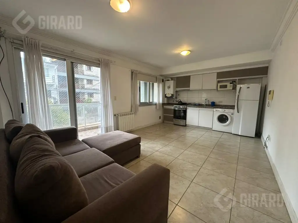 El departamento cuenta con 40 m2 cubiertos y 5 m2 descubiertos, con una disposición al frente que asegura luminosidad en todos sus ambientes. Consta de un dormitorio y un baño completo, ideal para una persona o una pareja. La cocina está equipada y cuenta con un balcón que proporciona un espacio adicional para disfrutar al aire libre.