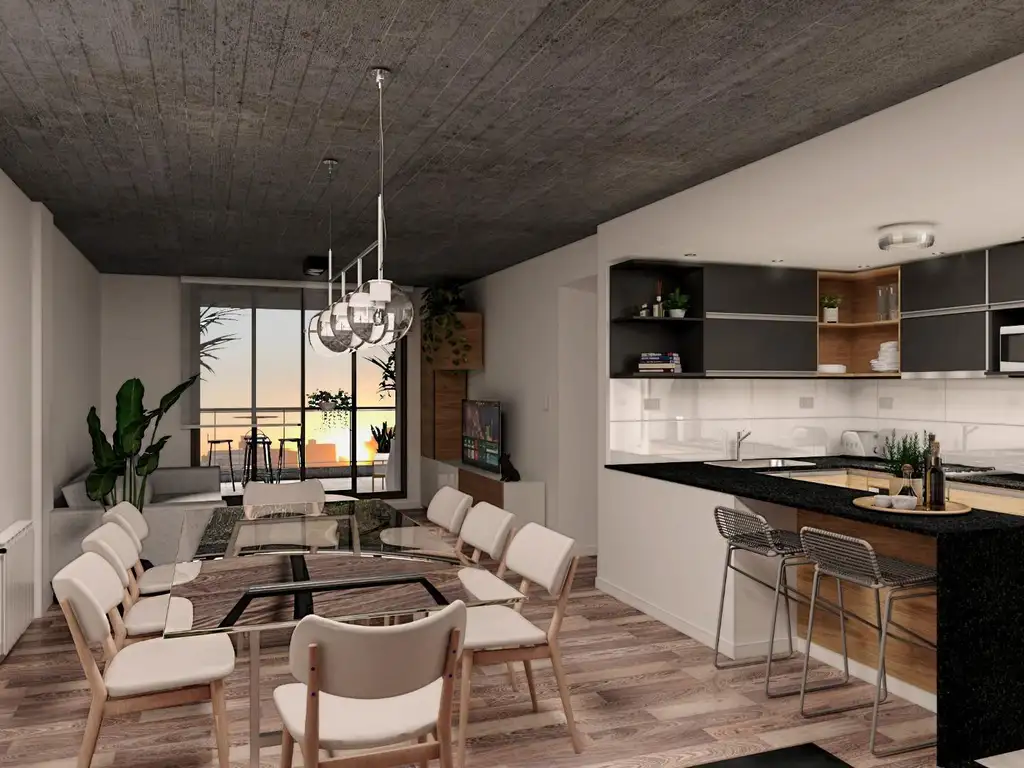 Departamento de 3 dormitorios al frente con parrillero en el balcón, living-comedor con cocina integrada, 2 baños (uno en suite), lavadero independiente y balcón de servicio con ventilación a aire luz.