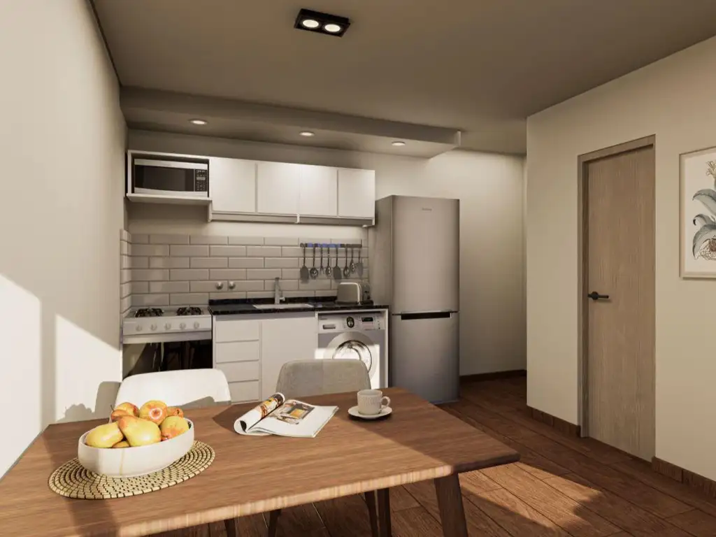 los departamentos van a contar con cocina y termotanque a gas,
