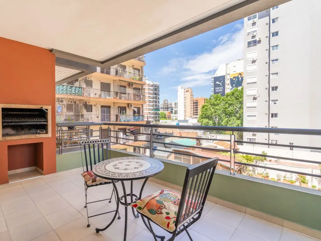 3er piso al contrafrente con espectacular balcón terraza con parrilla, amoblado con mesa y sillas.