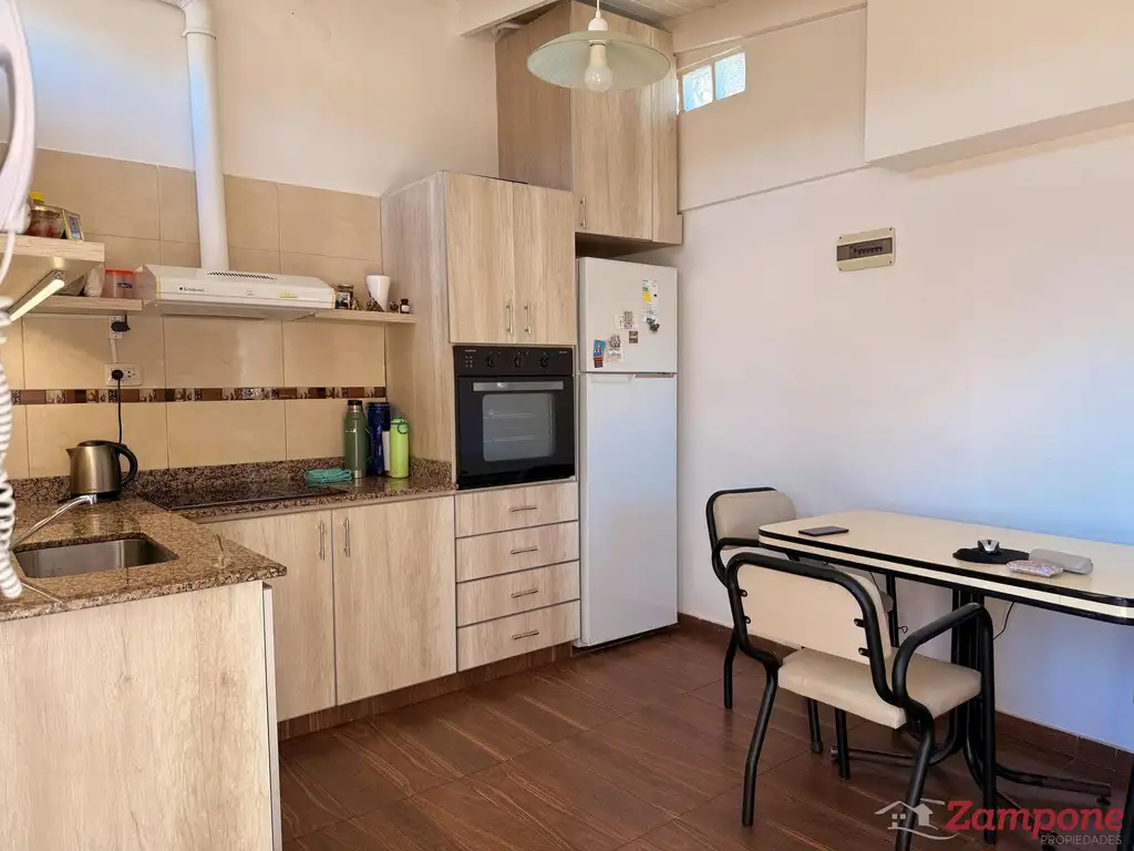 Distribución cómoda y funcional. La cocina-comedor hecha a nueva está equipada con muebles bajo mesada y alacena, proporcionando amplio espacio de almacenamiento.